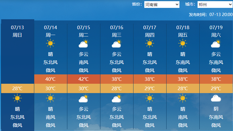 城市中,西安、郑州这个周末已经连续两天高温捷希缘,下周高温还将贯穿一整周,而且明后天,郑州最高气温将达到40°C或以上,“炎”值拉满。