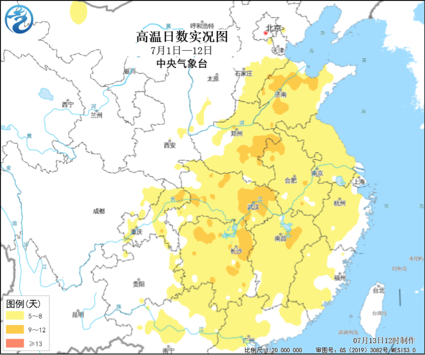 7月以来,我国高温天气频现,山东中北部、河南东部、湖北东部、湖南北部等部分地区高温日数已达9至12天,局地不乏40℃以上的酷热天气。